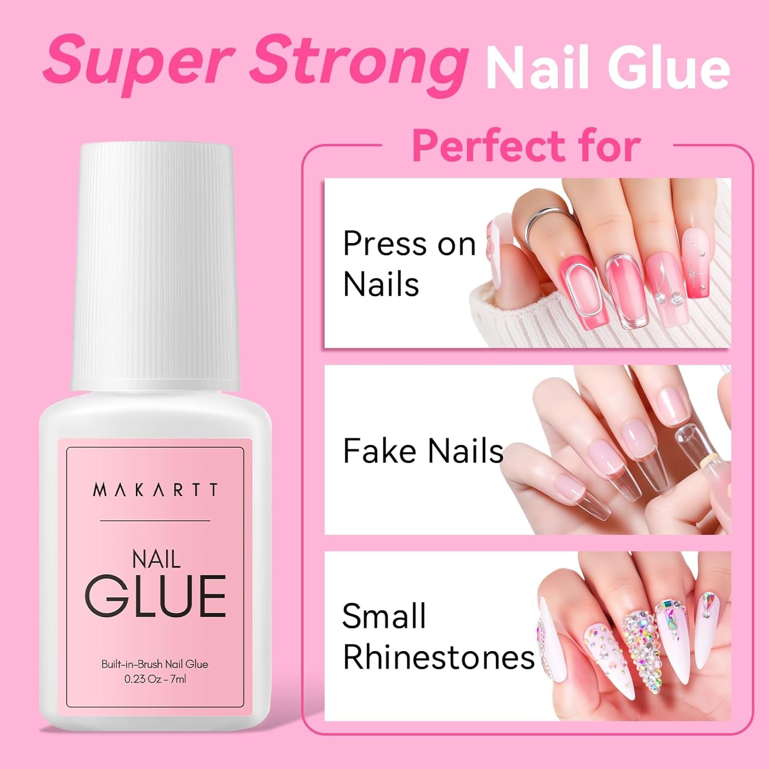 Makartt ekstra stærk neglelim til kunstige negle, 5 sekunder hurtigtørrende, akryllim til neglespidser eller reparerede negle, ingen UV-hærdning påkrævet, 7ml -