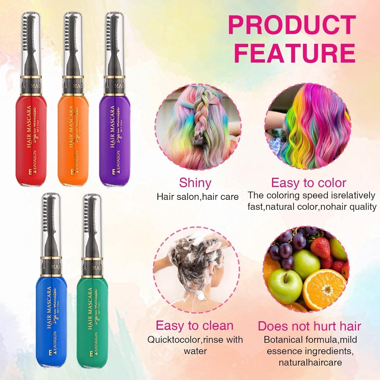 5 farver børn midlertidig hårfarve vaskbar farvet hår Mascara hår kridt salon