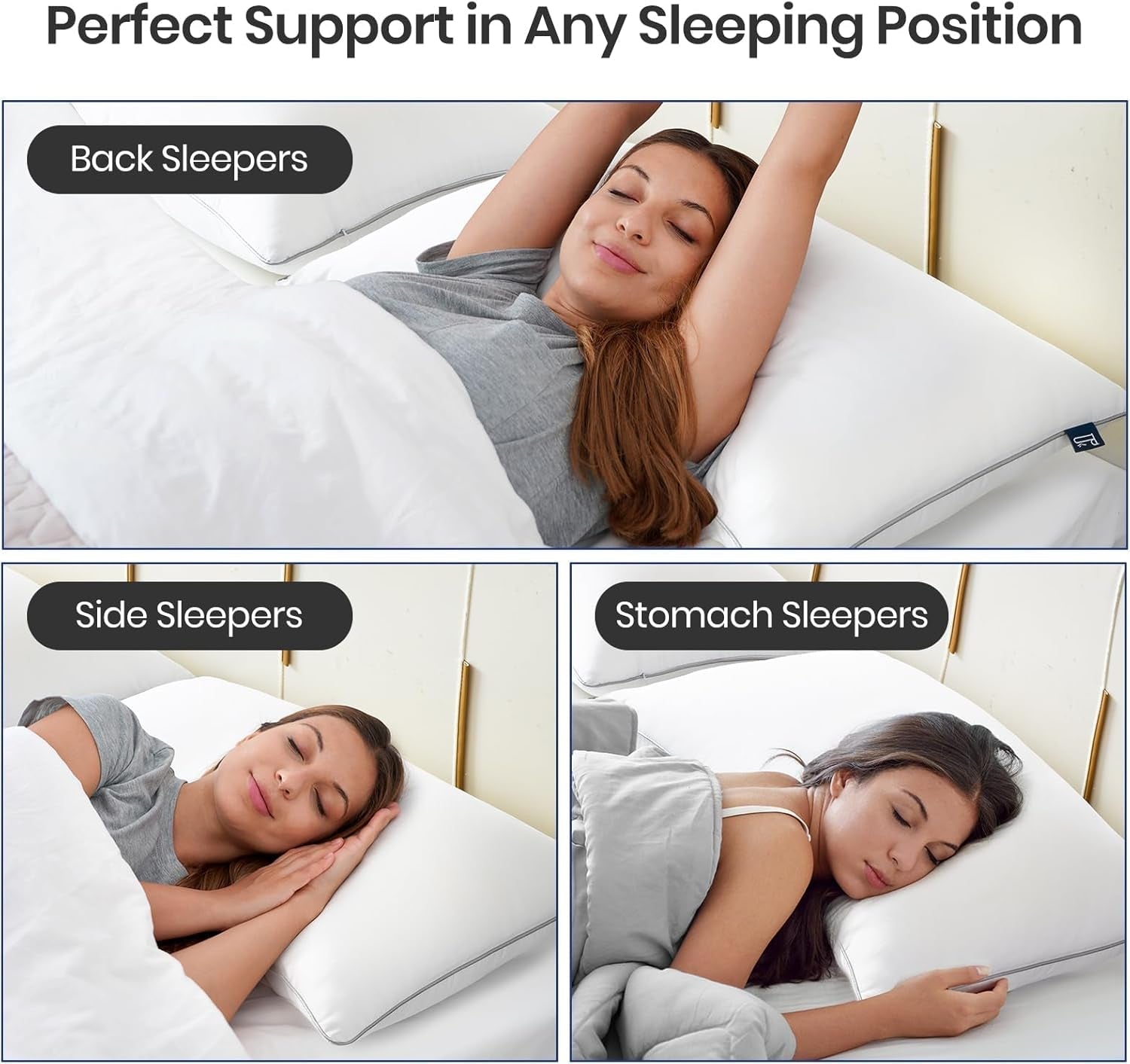- Luksus derhjemme: No-shift konstruktion sikrer, at puderne aldrig bliver flade eller glider ud under dig, uanset hvilken soveposition du foretrækker. Med deres bløde, luftige fornemmelse og højkvalitetskonstruktion er du sikker på at nyde oplevelsen af hotelluksus i dit eget hjem.