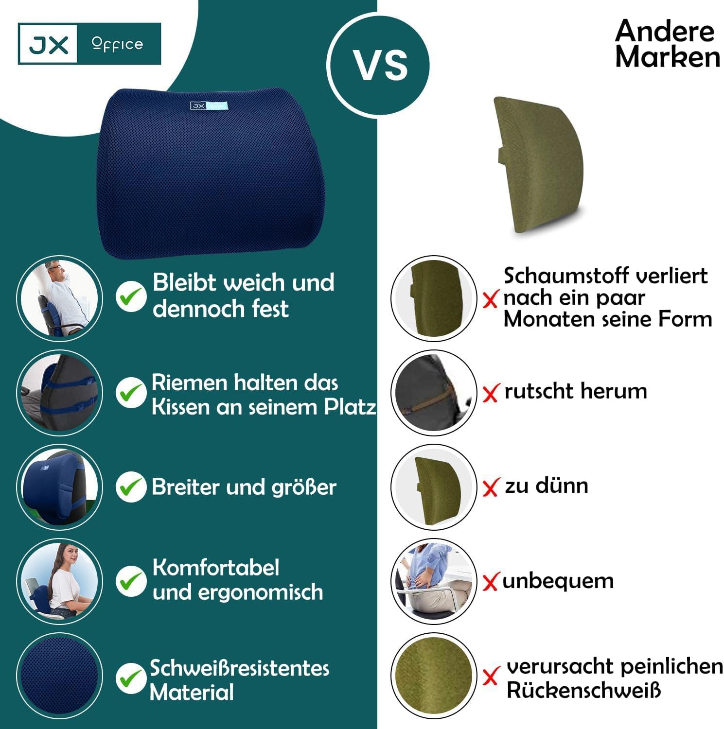 - ðŸª'OPTIMUM KOMFORT: ergonomisk pude, der støtter rygsøjlen, sikrer maksimal komfort og fremmer effektivt arbejde.