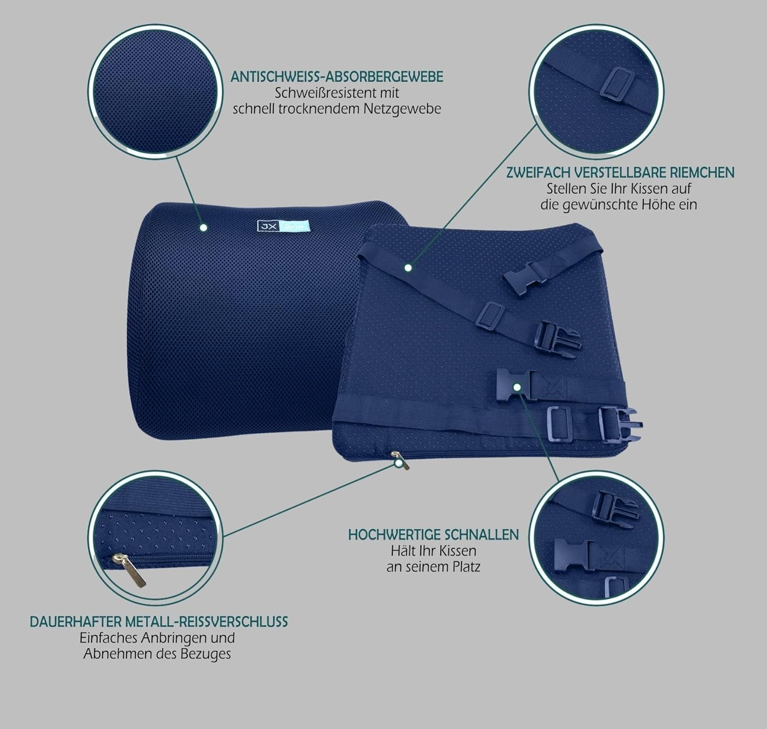 - Justerbare stropper: Fastgør den ergonomiske sædehynde for pålidelig støtte og optimal komfort, når du sidder ned.