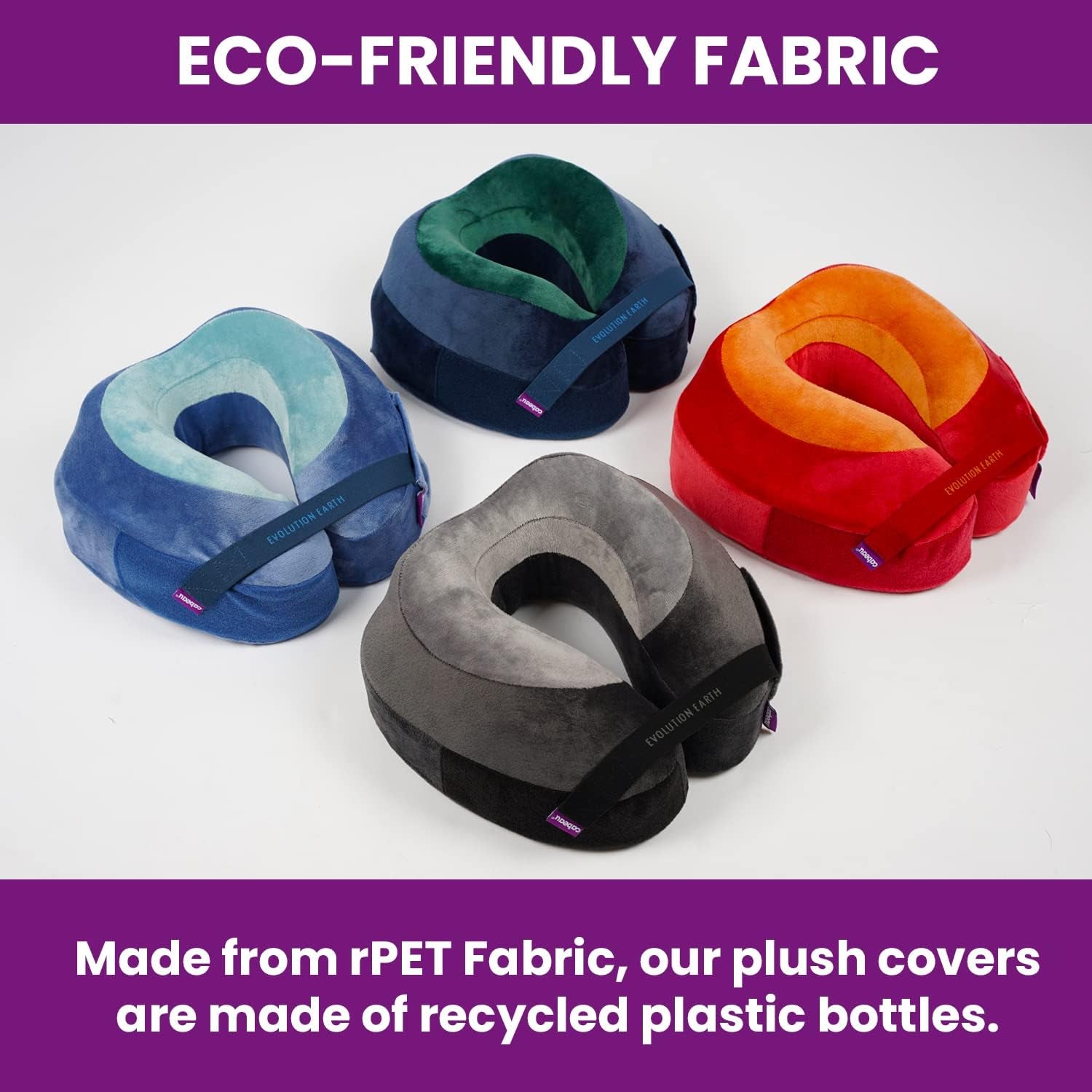 The Evolution Earth: Cabeaus første bæredygtige nakkepude. Evolution Earth er lavet af smørblødt, miljøvenligt RPET-stof, lavet af genanvendte plastikflasker, genanvendeligt gråt DNA-memory-skum og inkluderer vores 360° hovedstøtte med vores nye verdensomspændende patentanmeldte hagerem, uden at ofre funktionalitet eller komfort. Vi bekymrer os om vores fodaftryk på denne verden, og hver dag forpligter vi os til at gøre mere for at hjælpe miljøet. Vi er stolte af, at Cabeau er blevet en plastneutral virksomhed i 2022 og ønsker at sikre, at vi introducerer innovative rejseprodukter, som har en positiv miljømæssig og social påvirkning, som appellerer til vores kunder. For at nå vores mål har vi indgået et samarbejde med Clean Hub, en global non-profit organisation, for at fjerne 25.000 kg plastikaffald fra havet hvert år - den samme mængde som de materialer, vi bruger i vores produkter. Earth Evolution er vores påmindelse om at efterlade denne verden et bedre sted, end vi forlod den.