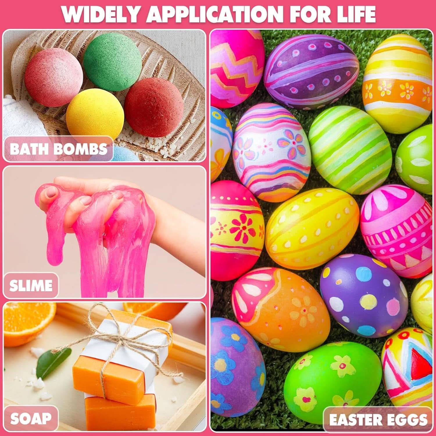 MULTI-PURPOSE - Vandbaseret glasurfarve er omhyggeligt formuleret og spredes øjeblikkeligt. Bruges almindeligvis til kagedekoration, smørcreme, frosting, fondant, fondant osv. Den er også perfekt til gør-det-selv-slim, modeller, sæber og badebomber.