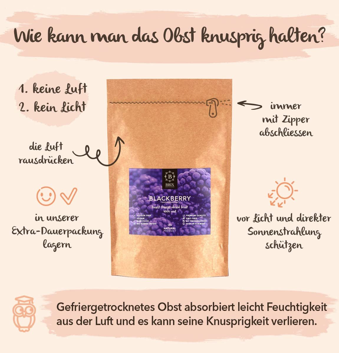 Frysetørrede brombær BRIX | Naturlige brombær, tørret 105 g | Great Taste Award for tørrede bær | GMO-fri, glutenfri, vegansk, tilbageholdte vitaminer