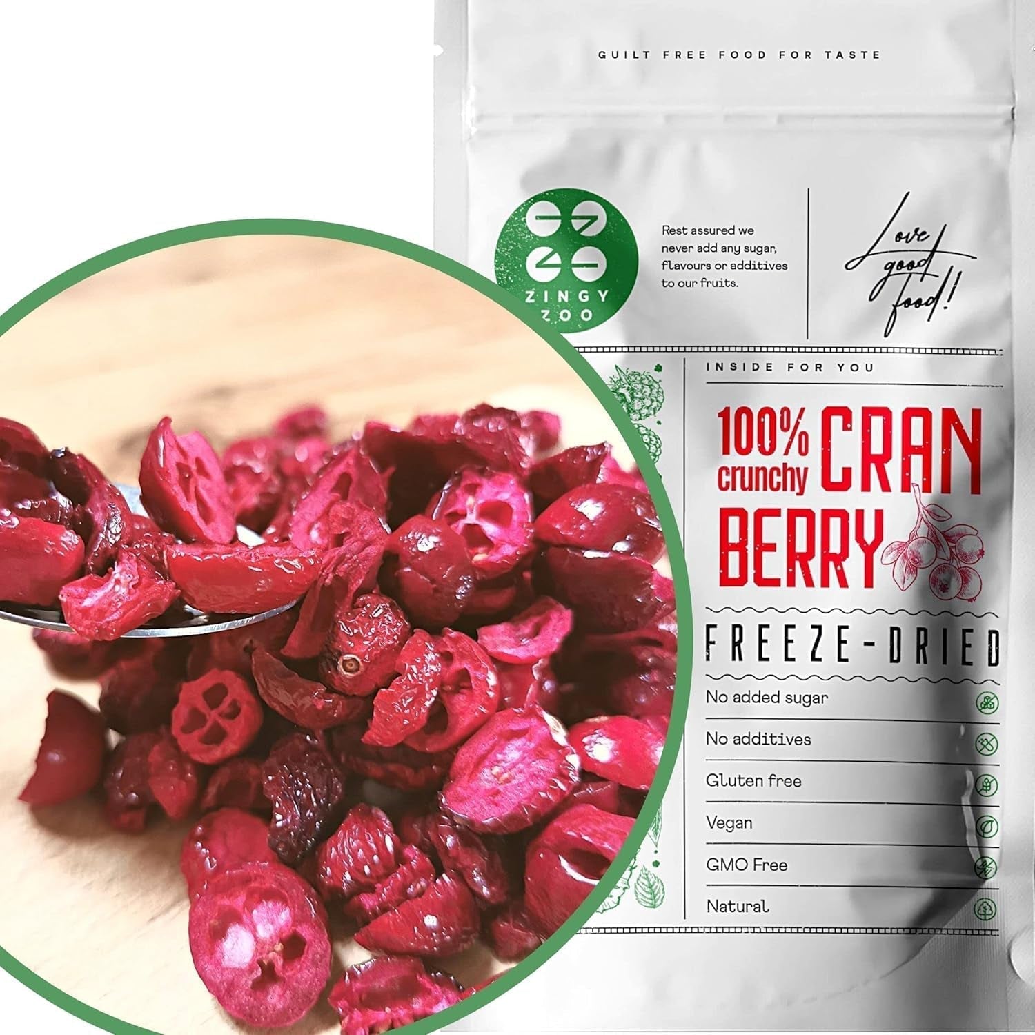 - FRYSETØRRET TRANEBÆRFRUGGT - Ren, rå, naturlig frysetørret frugt uden tilsat sukker. Perfekt frugt til snacks, müsli eller dekoration af kager.