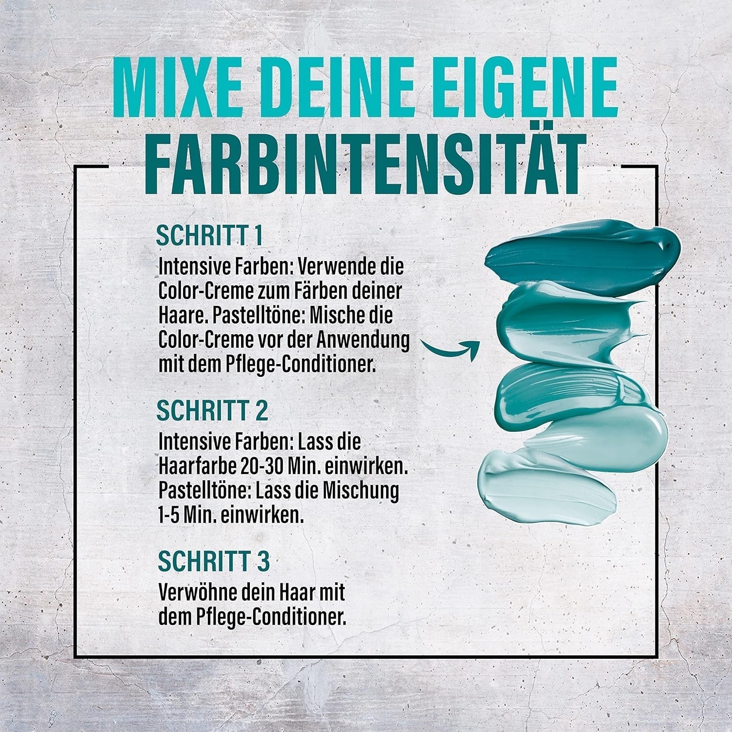 1. Intense farver: Brug farvecreme til at farve dit hår. Pastelfarver: Bland med plejebalsamen før brug. 2. Lad hårfarven sidde i 20-30 minutter. Blend 1-5 3. Forkæl dit hår efter Det anbefales at bruge vandtætte plastikhandsker, når du påfører produktet. Du har mørkt hår. Du har ikke noget problem. Brug got2b Lightener til at lette. Til langt eller tykt hår anbefaler vi at bruge to farve-/kunstnerpakker.