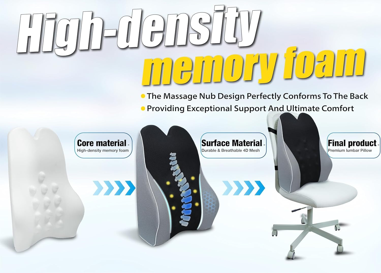 - ã€'Ultimativ komfort lændestøttepude til kontorstol/carã€'Komfortlændestøttepuden giver uforlignelig rygstøtte til kontorstol, autostol, kørestol osv. Fremstillet af memoryskum med høj densitet, er den blød, men alligevel støttende og vil ikke blive flad. Nyd komforten hver gang du sætter dig ned