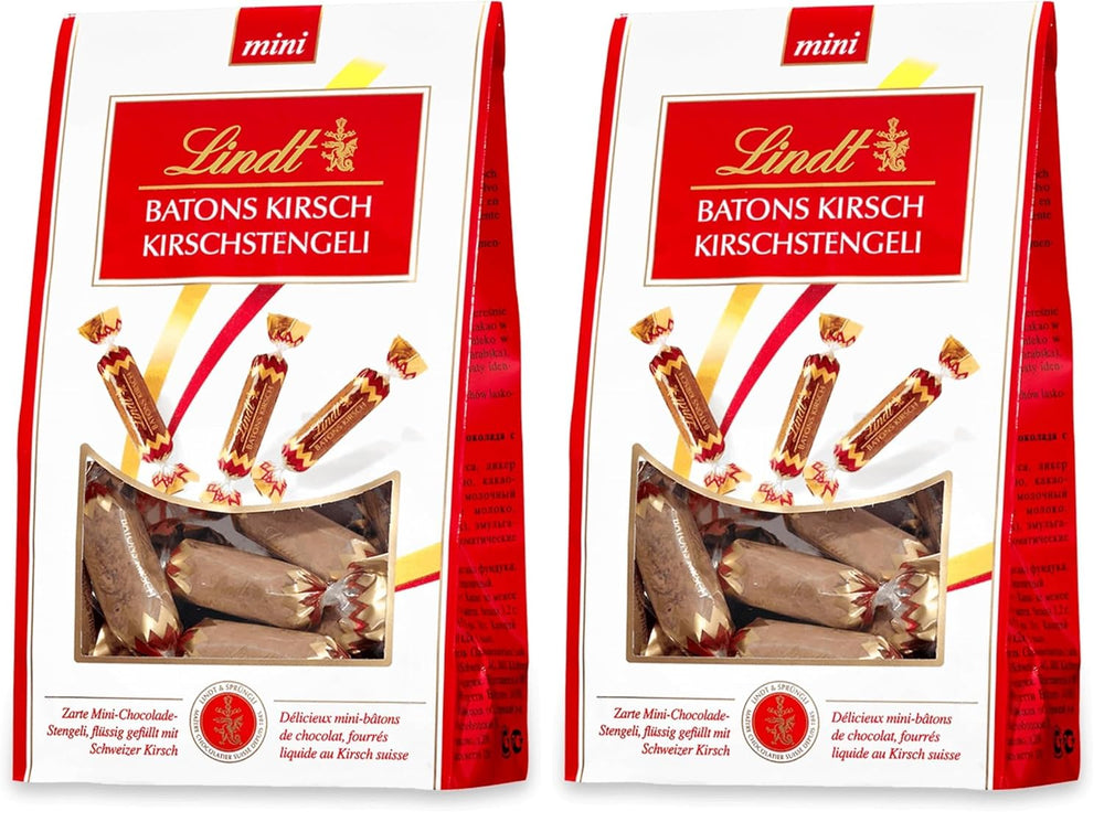 Lindt Kirschstengeli er en førsteklasses chokoladeoplevelse: Kirsebærstænger i mælkechokolade fyldt med flydende schweizisk kirsebærlikør. designet til elskere af autentisk smag og særlige lejligheder, klar til at blive nydt som en dessert eller en elegant gave.