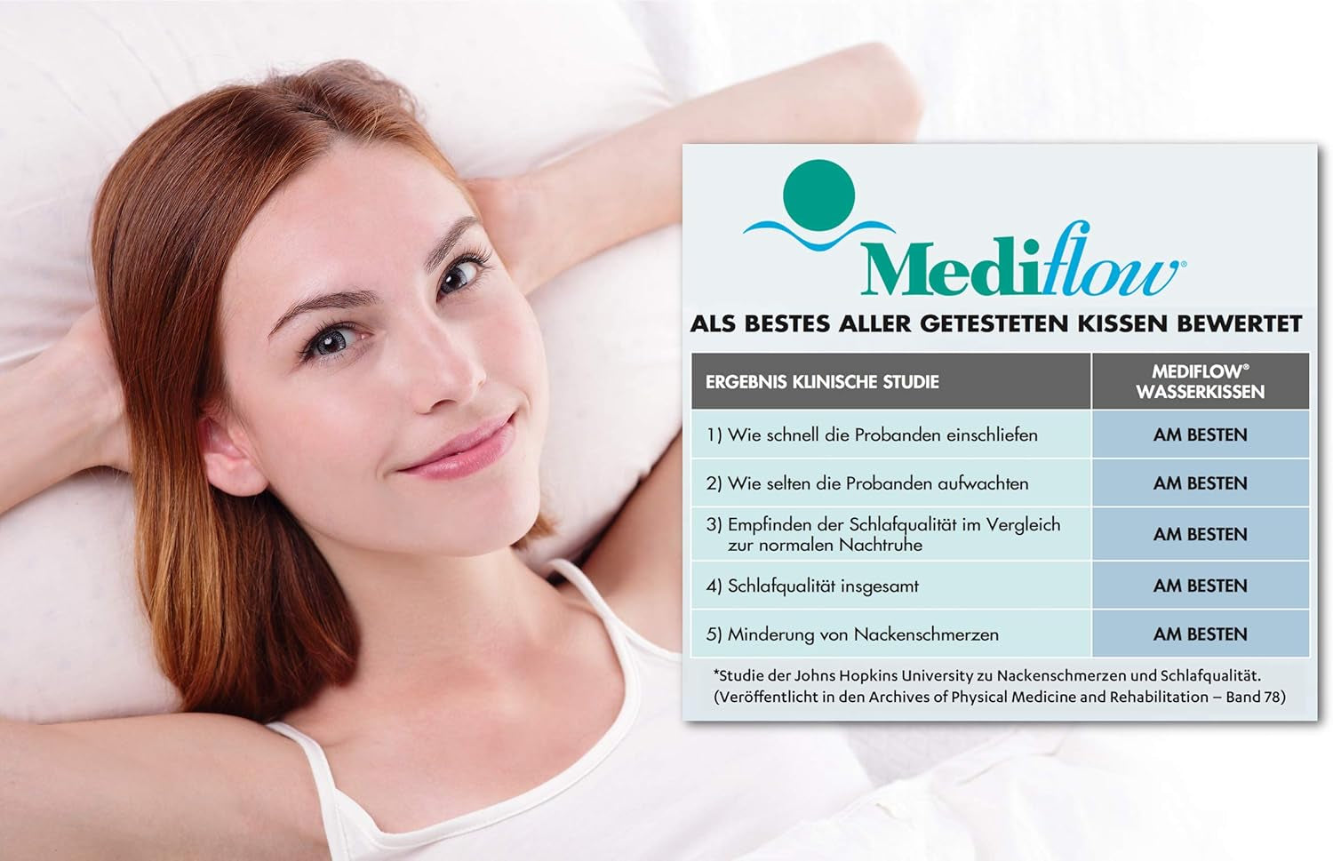 Mediflow vandpuden er udviklet til enestående komfort og har vist sig at reducere nakkesmerter og forbedre søvnkvaliteten. Viscoskum af høj kvalitet sikrer et perfekt klima - hele natten lang. Som sædvanligt med Mediflow kan graden af ​​fasthed og støtteeffekt individuelt og løbende tilpasses dine behov. Til alle, der har høje forventninger til deres viskoskumpude og alligevel ikke vil opgive den velkendte komfort ved en vandpude.