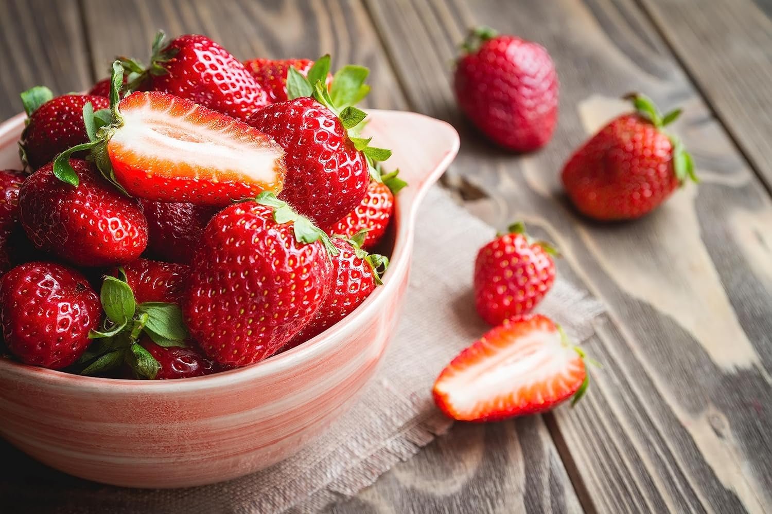 Lette jordbærskiver er også et godt supplement til chiabudding, frugtkvark og til bagning af frugtkager og tærter.