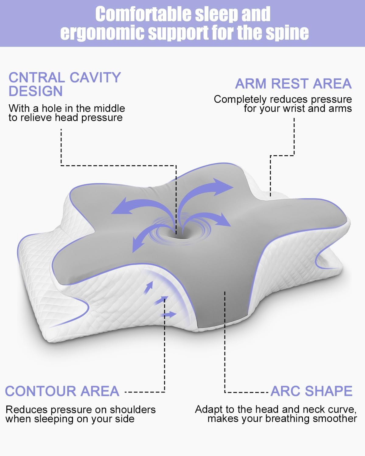 - Effektiv støtte til en afslappende søvn :Dette nyligt fortykkede memory foam pudedesign, som denne nakkepude har to forskellige højder, velegnet til forskellige sovende med forskellig kropsvægt. Den opfylder behovene hos side-, ryg- og mavesovende og giver mulighed for roligere vejrtrækning og mere behagelig søvn. Stop med at snorke, vågn op udhvilet om morgenen. Lindrende nakke- og skuldersmerter Puder fås i to forskellige højder for at understøtte en række forskellige sovestillinger. Hornpuden (13 cm) har riller på begge sider, så dine arme passer naturligt og behageligt ind i rillerne, uanset hvilken vej du drejer. Det buede, bølgeformede design på den anden side (11cm) tilpasser sig godt til hoved og nakke, fordeler stress, slapper af og tilpasser søvnen. Nakkepuden er lavet af premium memory-skum, dens gennemprøvede konturdesign tilpasser sig perfekt til kurven på skulder og nakke, støtter dit hoved og nakke og aflaster betydeligt pres på halshvirvelsøjlen.