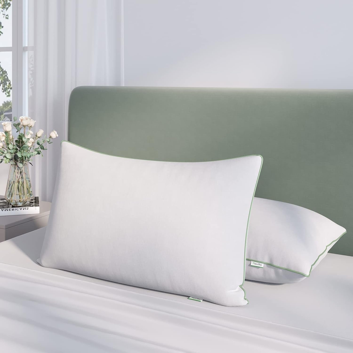 Novilla Pude 65X65 Sæt med 2, 2800G (1400Gx2) Højdejusterbar pude Firkantet sovepude Hvid sengepude med lynlås Vaskbar pudebetræk