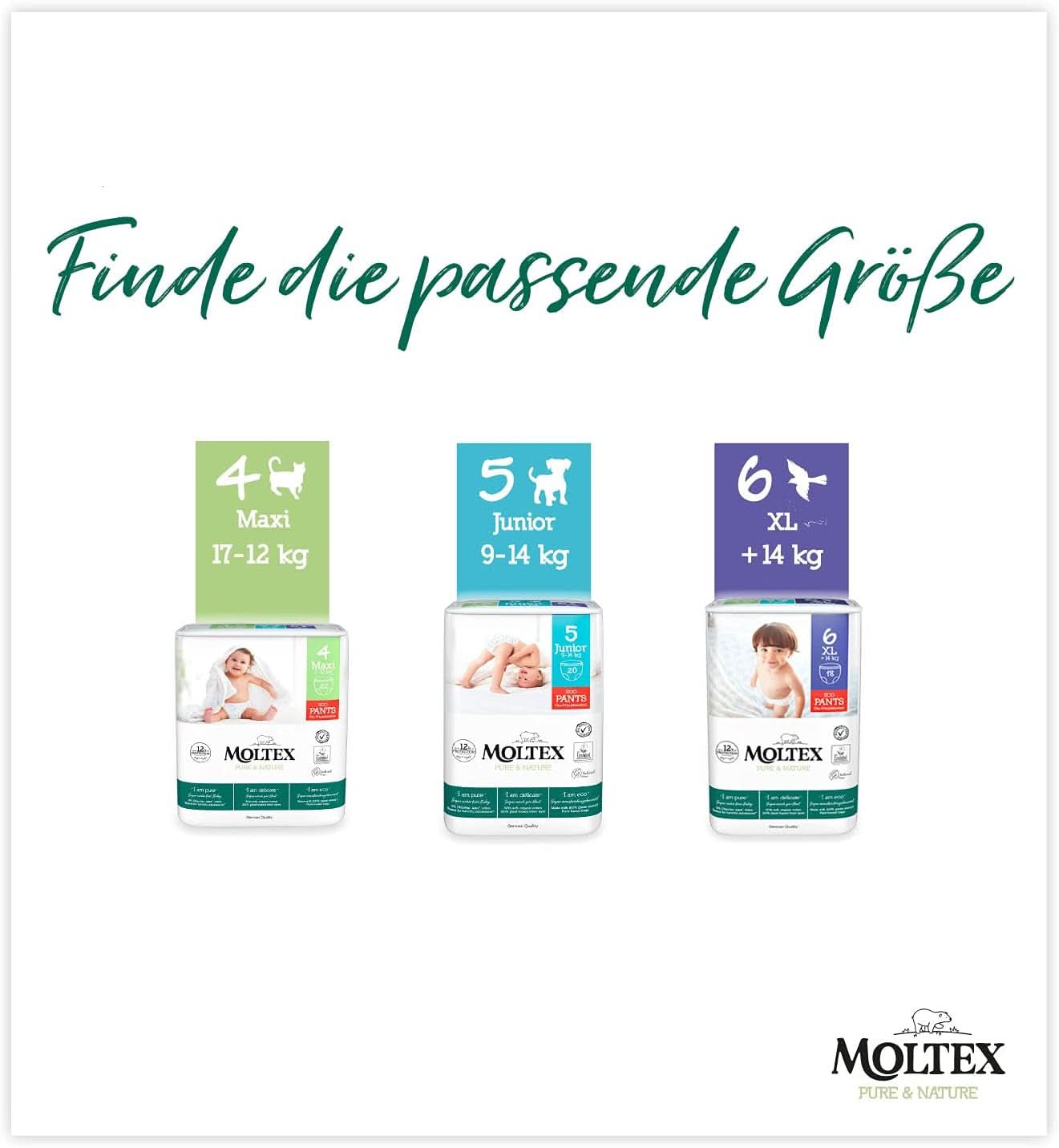 Moltex har en lang tradition og blev introduceret på markedet i 1961. Moltex-mærket står for pålidelige og højtydende babyplejeprodukter, der er sikre for babys hud og samtidig særligt miljøvenlige. Kun de nyeste produktions- og kvalitetskontrolteknologier bruges til vores nye MoltexX Pure & Nature, og bleerne fremstilles udelukkende i Tyskland med 100% grøn energi. Den nye Moltex Pure & Nature er ikke kun særlig holdbar, men tilbyder også sikkerhed og komfort til babys sarte hud. Den nye Moltex Pure & Nature har en 100% blød og naturlig indre fleece og en superblød økologisk bomulds yderfleece. Derudover er bleerne særligt hudvenlige og indeholder ikke naturlig latex, lotion og duft. Takket være den forbedrede kerne og åndbare materialer tilbyder den nye MOLTEX Pure & Nature op til 12 timers beskyttelse mod lækager både dag og nat. MOLTEX Pure & Nature fås i seks forskellige størrelser med dejlige dyremotiver, der ledsager de små blehelte og deres forældre på spændende eventyr. De små darlings støttes af den stærke og fløjlsbløde ble, som er særligt skånsom mod babys sarte hud og giver ekstra komfort. Dette gør det sjovt at udforske.