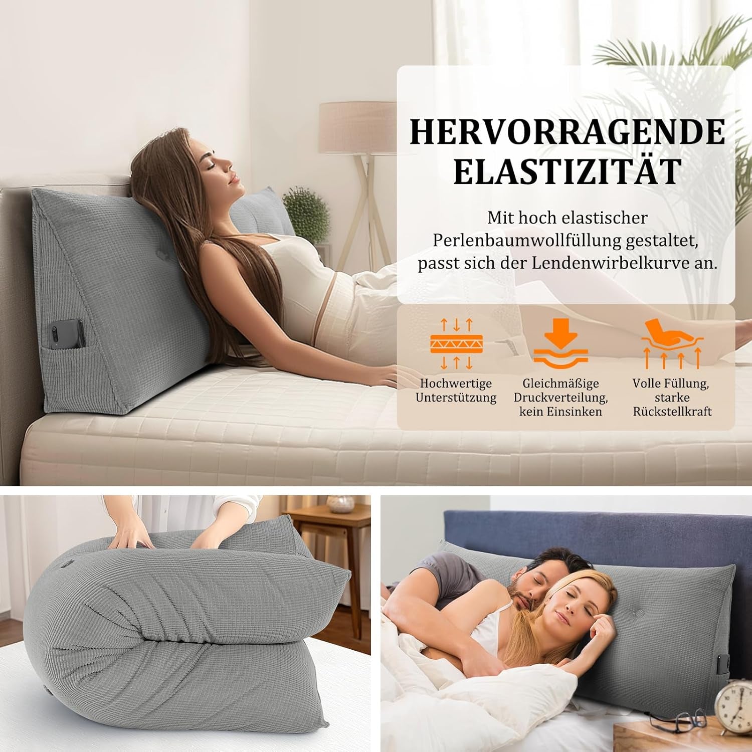 - Sundt liv, omsorgsfuldt selskab: Forkert siddestilling kan føre til ubehag. Denne læsepude til seng og sofa giver stabil støtte for at hjælpe dig med at bevare den korrekte sidde- og sovestilling. Det lindrer også smerter og ubehag fra diskusprolaps og gastrisk refluks, så hver hvilepause bliver et øjeblik for sundhedspleje