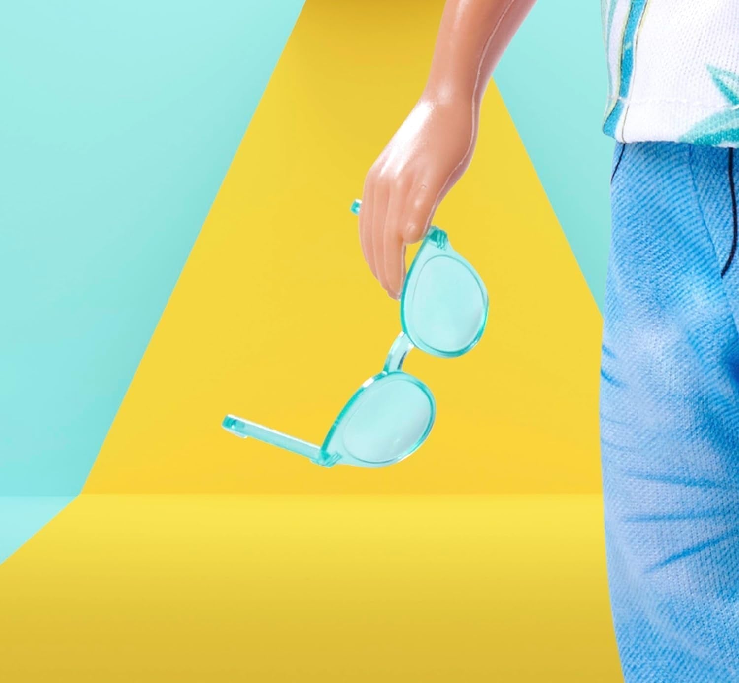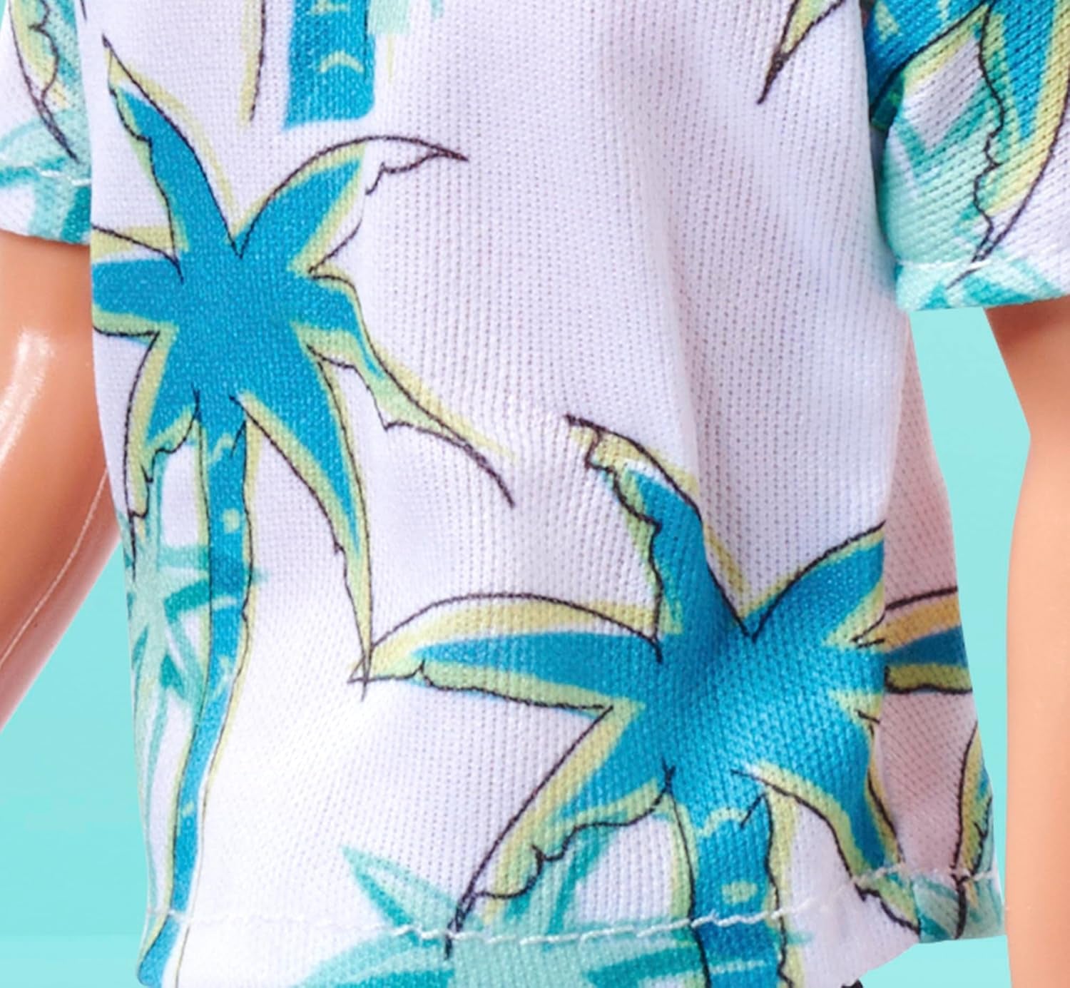 - Kevin i et afslappet sommerlook - Kevin bærer en stilfuld top med palmeprint sammen med cool jeans. Hans outfit er perfekt til afslappet leg og sommereventyr. Trendy tilbehør - solbriller fuldender Kevins look og gør ham til en fashionabel følgesvend til fantasifuldt rollespil.