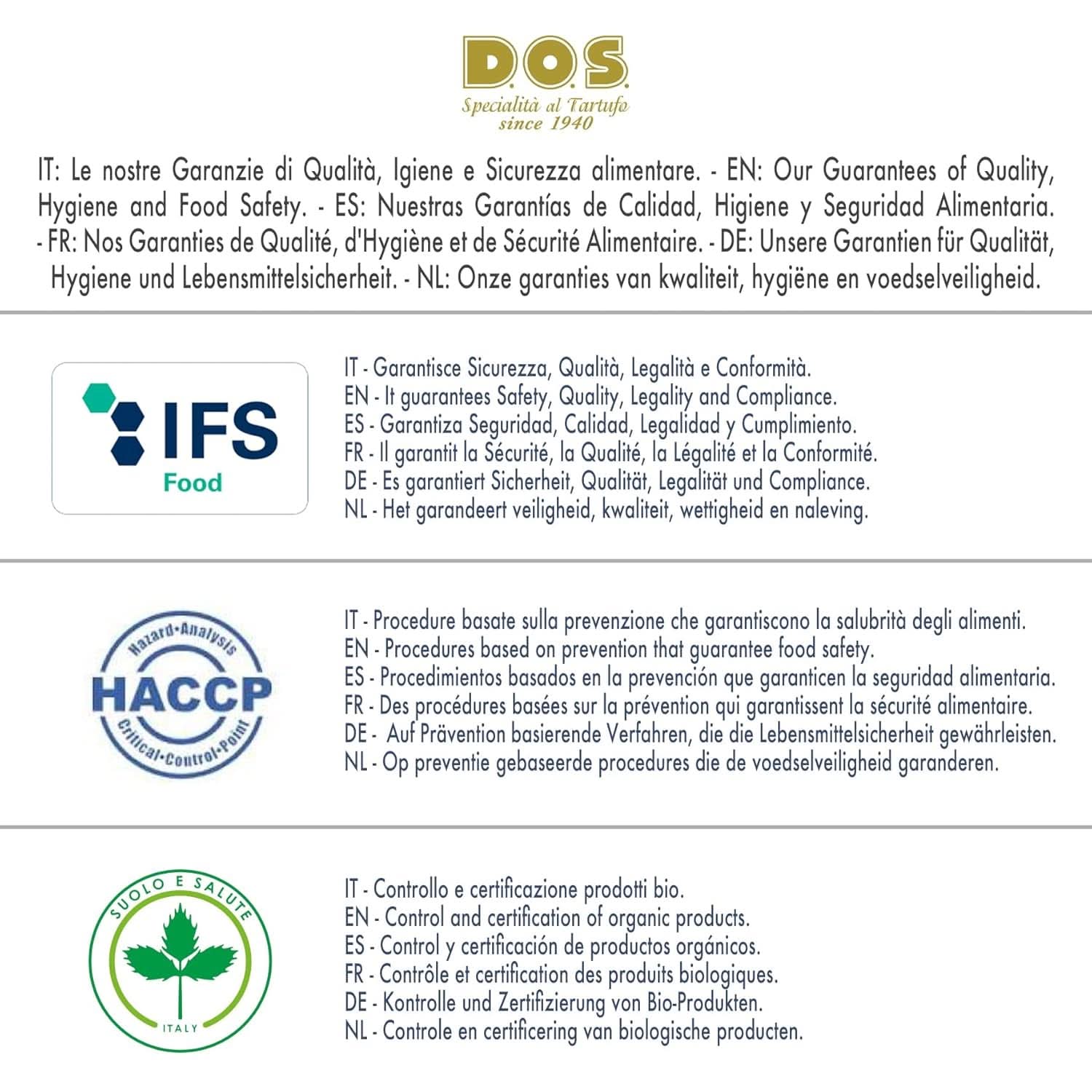 - Tradition siden 1940: DOS Tartufi repræsenterer årtiers erfaring og ekspertise inden for trøffelprodukter. Stol på vores tradition og forfin dine retter med vores sorte trøffelkoncentrat