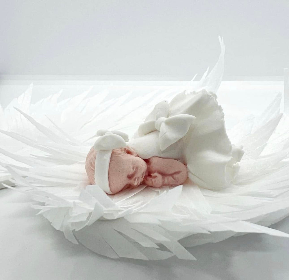 Spiselig dekoration lavet af sukkerpasta og oblat