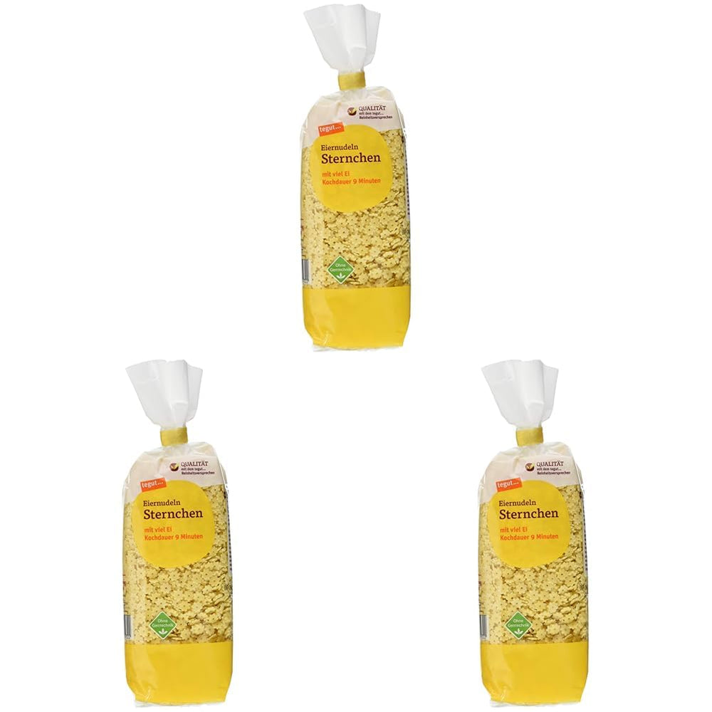 tegut... Eiernudeln Sternchen er den stjerneformede ægspasta skabt til autentiske pastaelskere, der sætter pris på rene ingredienser. Velegnet til familiemåltider, disse gyldne stjerner tilføjer et sjovt element til tallerkenen og egner sig til supper såvel som kødretter eller pastasalater.