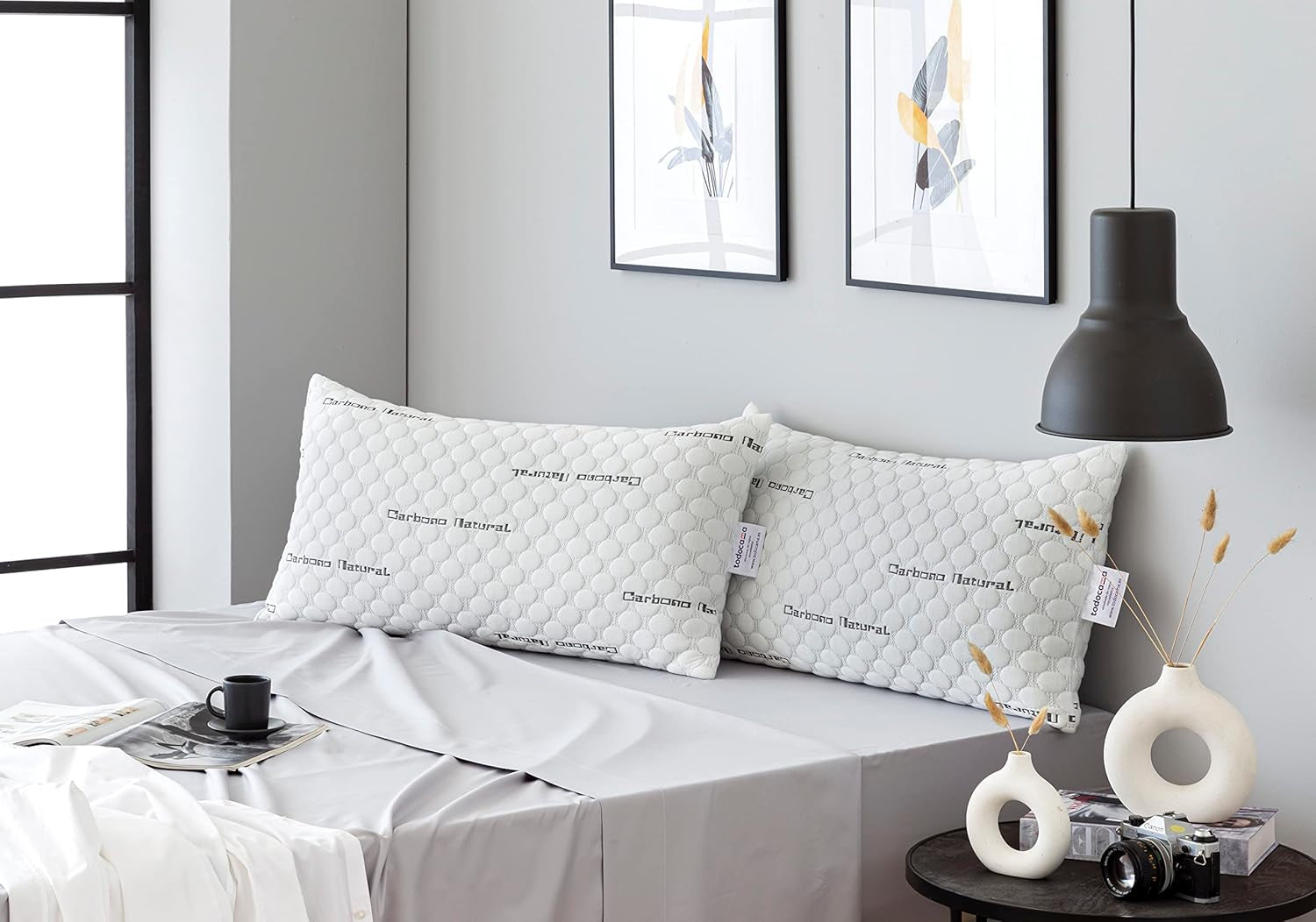 - Stræk carbon-stoffet er blødt, køligt og behageligt. Giver blødhed, åndbarhed og naturlige hudberoligende egenskaber .