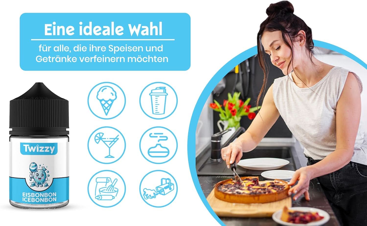 Oplev smagen af Twizzy isbolsjer, en ægte berigelse til dit køkken. Denne intenst duftende smag tilbyder en enestående smagsoplevelse og er perfekt til at forbedre en række forskellige fødevarer og drikkevarer. Den passer perfekt til kaffe, shakes, kager, kvarg og yoghurt og tilføjer et særligt touch til enhver opskrift. Vores ispindsmag er sukkerfri, fedtfri og laktosefri, hvilket gør den ideel til en sund kost. Den er også velegnet til veganere og giver fleksibilitet i brug. Du kan tilpasse smagen til din smag ved at tilføje dit yndlingssødestof. Den praktiske dråbeflaske giver mulighed for nem og præcis dosering, hvilket gør smagen ideel til brug i madlavning, bagning og drikkevarer. Den er perfekt til kreative kokke og amatørbagere, der ønsker at tilføje et strejf af innovation og frugtighed til deres opskrifter. Oplev alsidigheden af vores ispindsmag og oplev, hvordan det kan tage dine sammenkogter til næste niveau